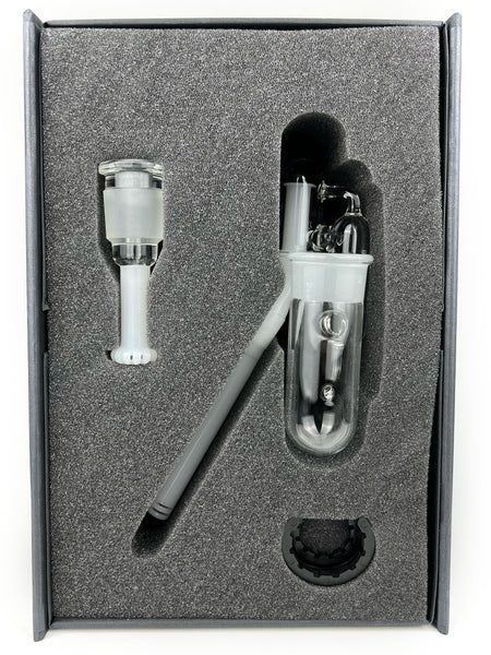 ARTIST: IlladelphJOINT SIZE: 14mm 45º to 14mm 90º (Fits Full Size Illadelphs)COLORS: White, Clear, Grey Label