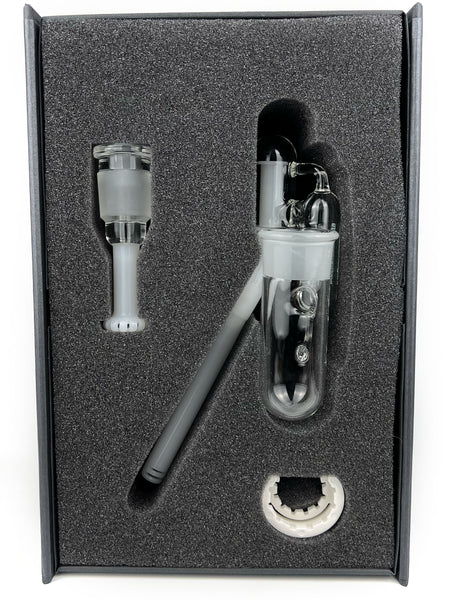 ARTIST: IlladelphJOINT SIZE: 14mm 45º to 14mm 90º (Fits Full Size Illadelphs)COLORS: White, Clear, Teal Label