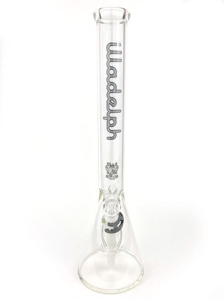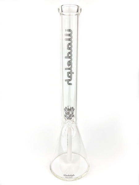 ARTIST: IlladelphHEIGHT: 19"BASE DIAMETER: 5"JOINT SIZE: 14mm 45ºCOLORS: Clear, White Downstem, Grey Label
