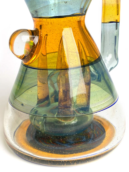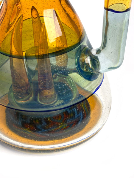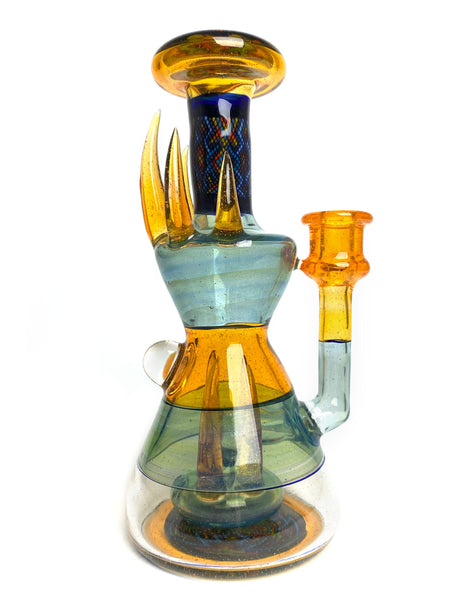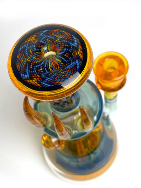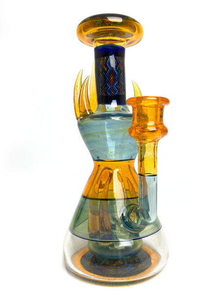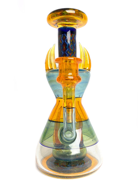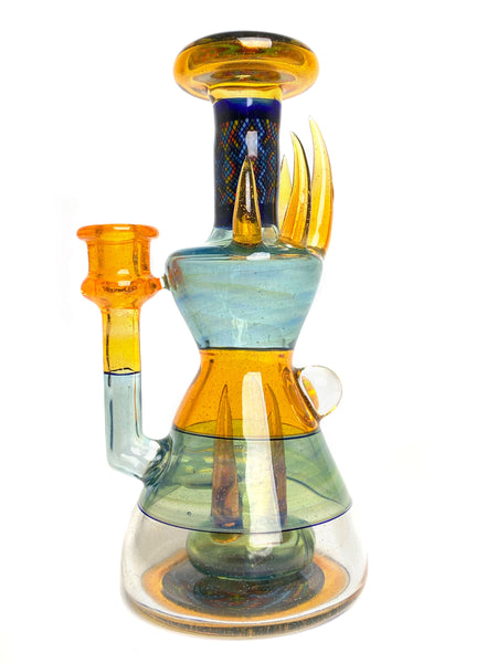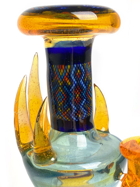 ARTIST: Adam ReetzHEIGHT: 7"BASE DIAMETER: 3.5"JOINT SIZE: 10mm 90ºCOLORS: Terps, Green Stardust over Irrid, UV Orange, Blu-V, Fillacello Sections, Oval OpalComes with Hard Case