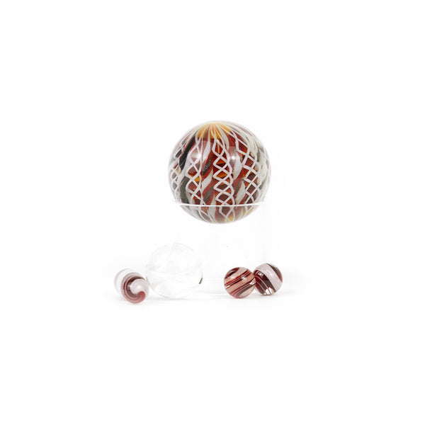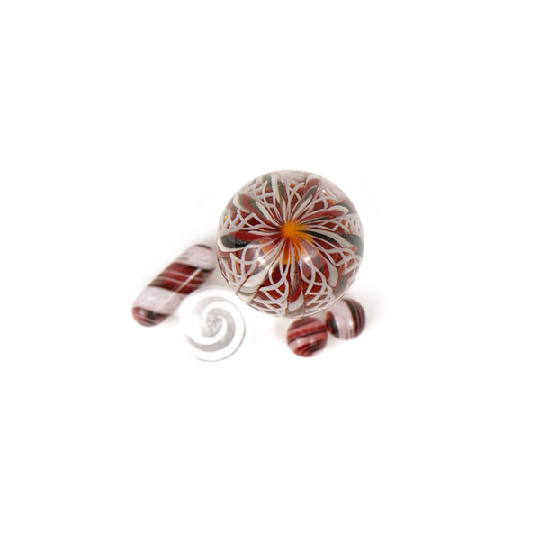 ARTIST: Harold CooneyVALVE SIZE: 12mmMARBLE SIZE: 22.5mmPILL SIZE: 6mm x 17mmPEARL SIZE: 7mmCOLOR: Red, White & Black Zanfirico
