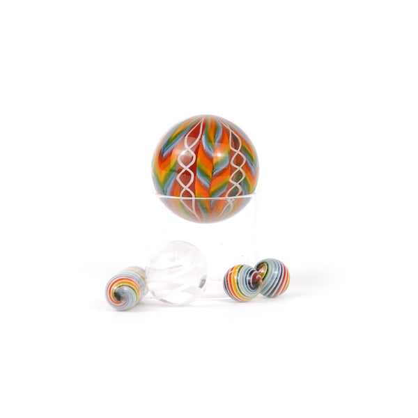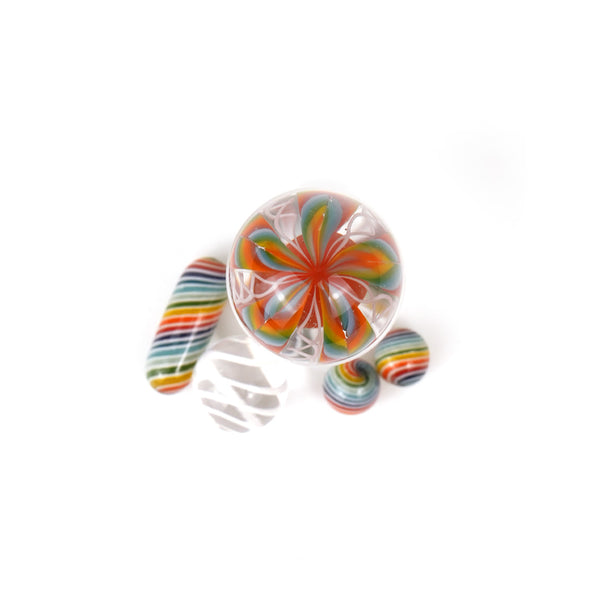 ARTIST: Harold CooneyVALVE SIZE: 12mmMARBLE SIZE: 21mmPILL SIZE: 7mm x 18.5mmPEARL SIZE: 7mmCOLOR: Rainbow & White Zanfirico