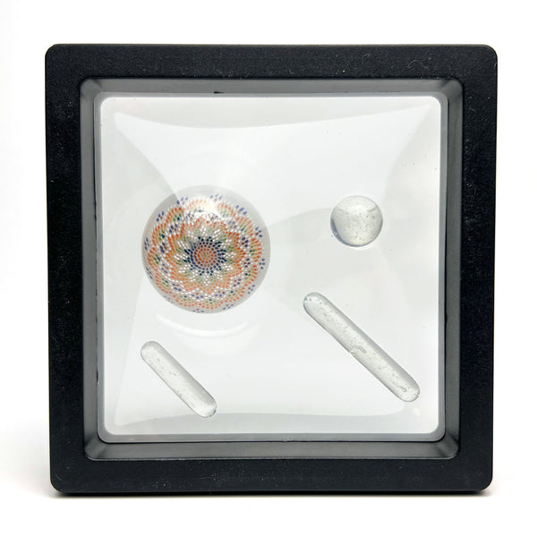 ARTIST: Joe Howe - JH GlassVALVE SIZE: 11mmMARBLE SIZE: 27mmPILL SIZE: 5mm x 21mm, 5mm x 32mmCOLOR: Secret White, Rainbow Dotwork