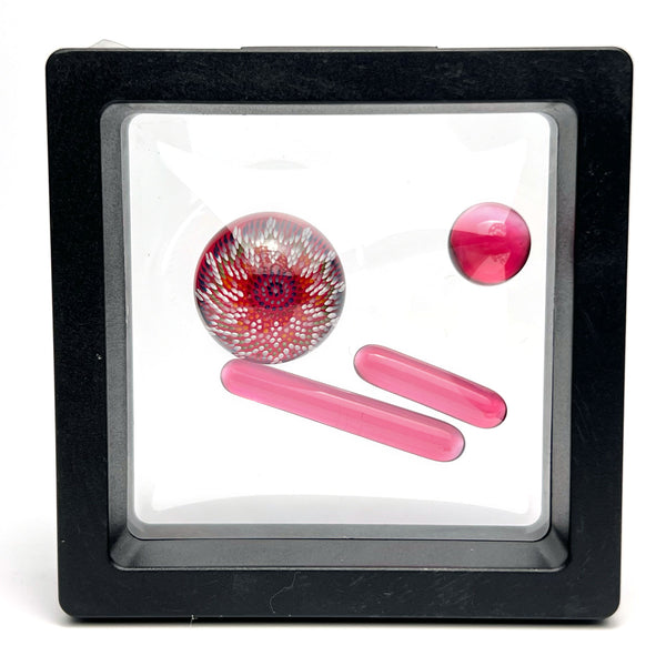 ARTIST: Joe Howe - JH GlassVALVE SIZE: 11mmMARBLE SIZE: 20mmPILL SIZE: 5mm x 21mm, 5mm x 32mmCOLOR: Gold Ruby, Geometric Dotwork