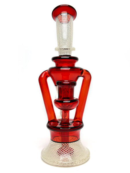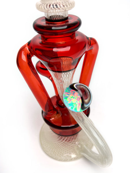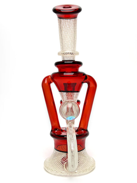 Artist: DavemanHeight: 9.5"Base Diameter: 3"Joint Size: 14mm 90º COLORS: Pomegranate, White Retticello, Black Lip Wraps, Opal CoinComes with Hard Case