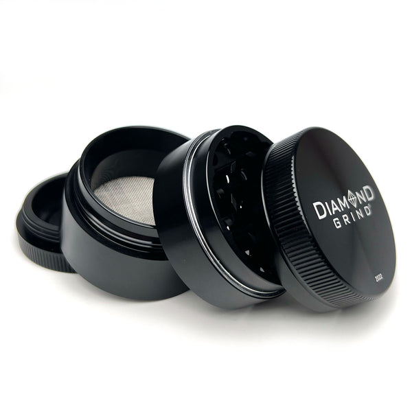 Diamond Grind grinders feature diamond shape sharp teeth to grind and shred your materials. Each grinder comes with a magnetic grinder on the top, a stainless steel screen and a bottom collection container and scraper.