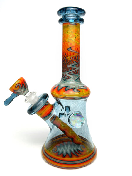 ARTIST: Alex SchmalexHEIGHT: 7.5"BASE DIAMETER: 3"JOINT SIZE: 10mm 45ºCOLORS: Blue Stardust, Blue Fire Lined Sections, Opal Coin