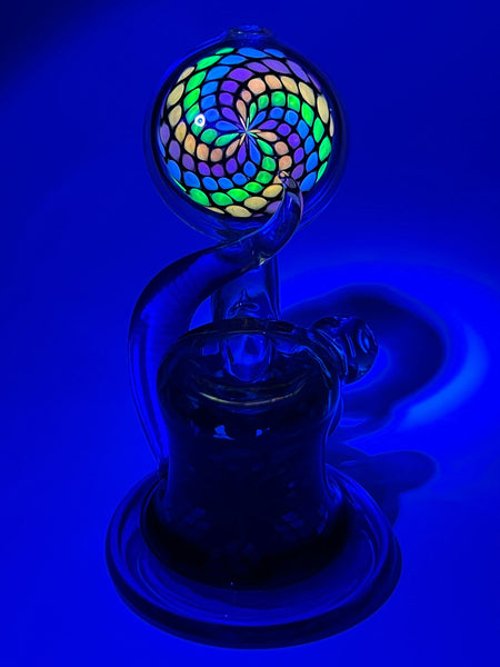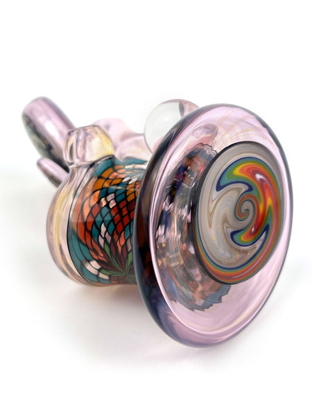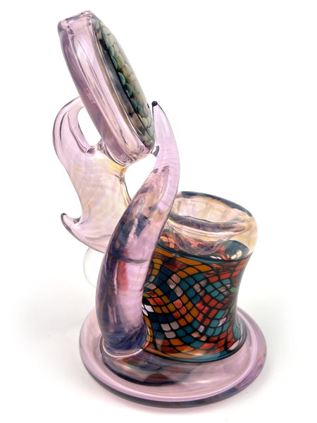ARTISTS: Eusheen, BCM GlassBASE DIAMETER: 2.5"HEIGHT: 4.5"COLORS: Unicorn Tears, Rainbow Fillacello, UV Fume Fillacello