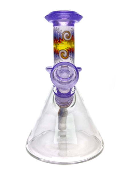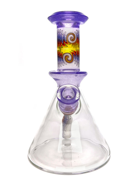 ARTIST: FogzHEIGHT: 7.5"BASE DIAMETER: 4.5"JOINT SIZE: 14mm 45ºCOLORS: Purple Lollipop, Purple Fire Wig Wags, Clear