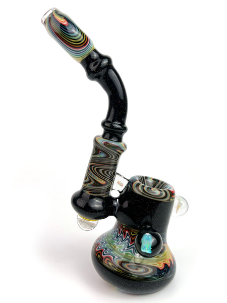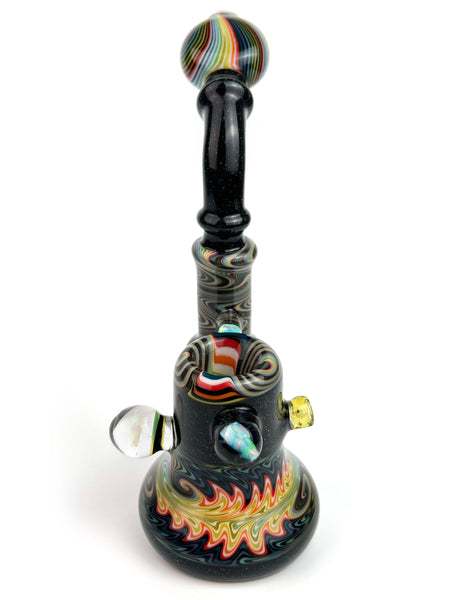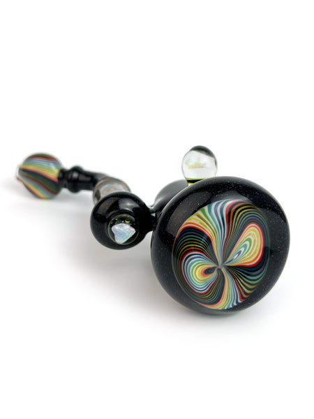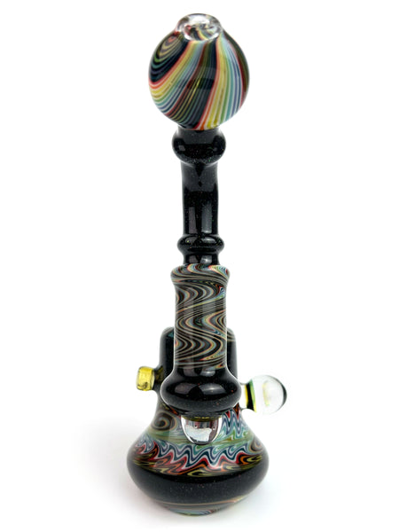 ARTISTS: Langer Glass, C Mau GlassCOLORS: Crushed Opal over Jet Black, Rainbow Wig Wags, Citrine (UV), OpalsHEIGHT: 7"BASE DIAMETER: 2"