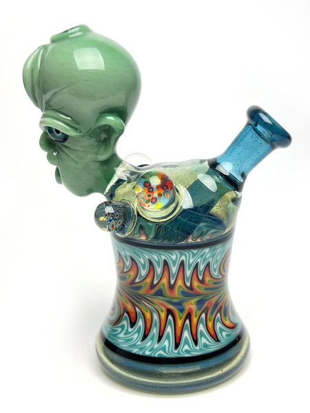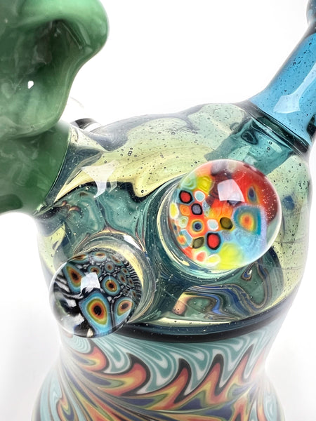 ARTIST: UpgradeHEIGHT: 6"BASE DIAMETER: 3"JOINT SIZE: 10mm 45ºCOLORS: Glass Alchemy Mint, Blue/Rainbow Wig Wags
