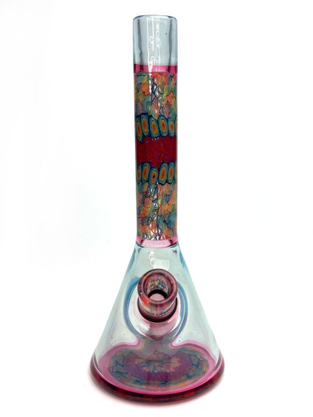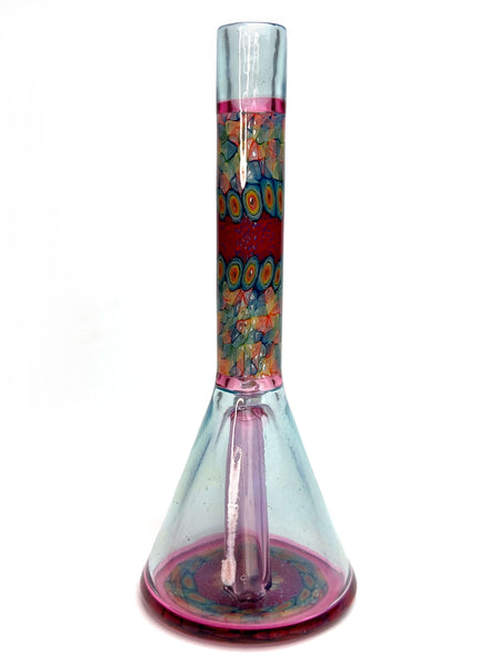 ARTIST: Jeff HeathbarHEIGHT: 6.5"BASE DIAMETER: 2.5"JOINT SIZE: 10mm 45ºCOLORS: Blue, Ruby Red, Rainbow Murrine