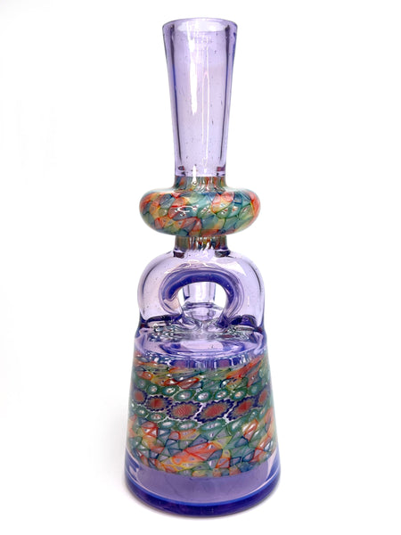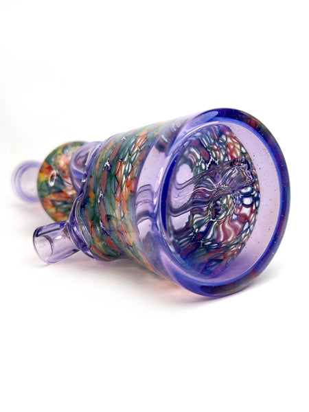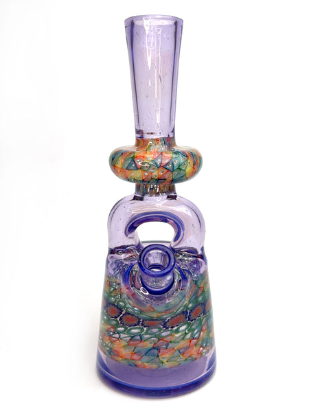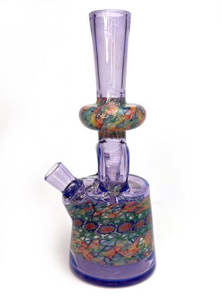 ARTIST: Jeff HeathbarHEIGHT: 6.5"BASE DIAMETER: 2.5"JOINT SIZE: 10mm 45ºCOLORS: Purple, Rainbow Murrine