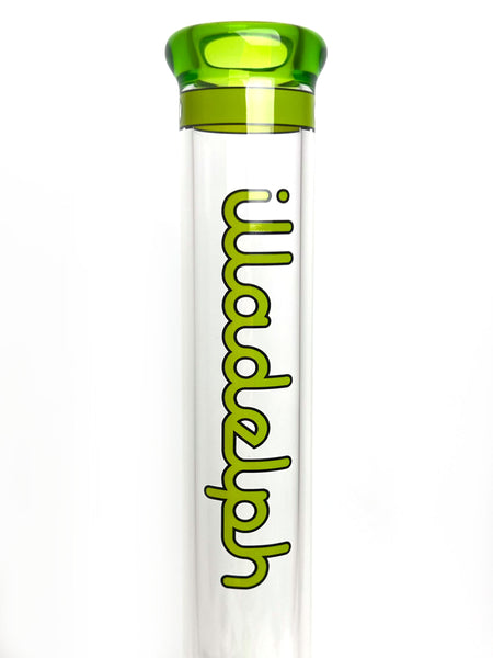 ARTIST: IlladelphHEIGHT: 19"BASE DIAMETER: 5.5"JOINT SIZE: 18mm 45ºCOLORS: Lime Green, Clear