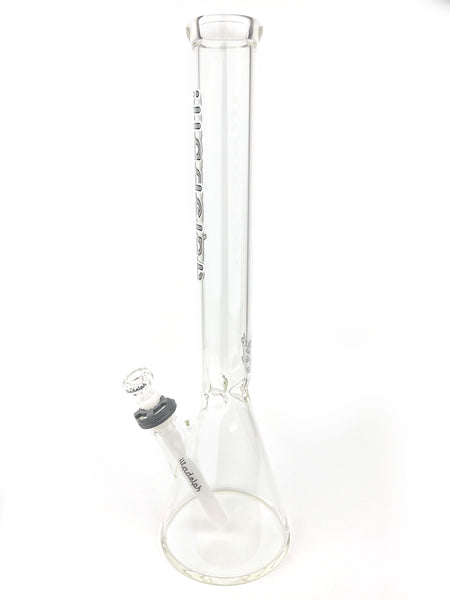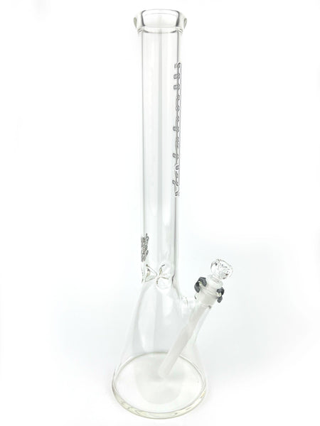 ARTIST: IlladelphHEIGHT: 19"BASE DIAMETER: 5"JOINT SIZE: 14mm 45ºCOLORS: Clear, White Downstem, Grey Label