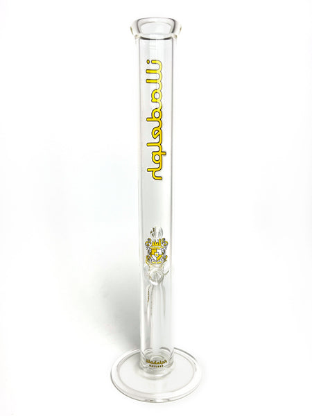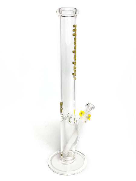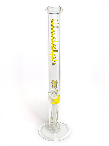 ARTIST: IlladelphHEIGHT: 19"BASE DIAMETER: 5.5"JOINT SIZE: 14mm 45ºCOLORS: Clear, White Downstem, Yellow Label