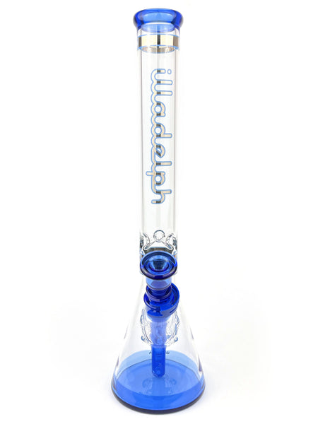 ARTIST: IlladelphHEIGHT: 19"BASE DIAMETER: 5.5"JOINT SIZE: 18mm 45ºCOLORS: Blue, Clear, Platinum Label