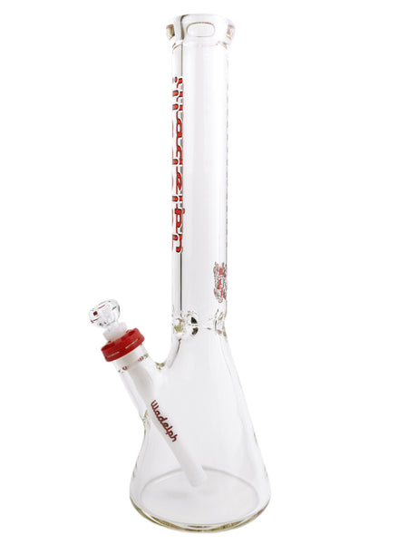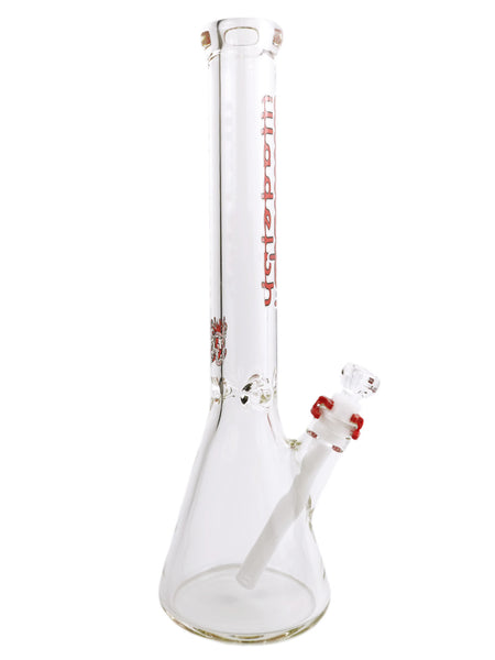 ARTIST: IlladelphHEIGHT: 17"BASE DIAMETER: 5"JOINT SIZE: 14mm 45ºCOLORS: Clear, White Downstem, Red/Black Label