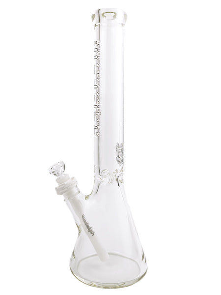 ARTIST: IlladelphHEIGHT: 17"BASE DIAMETER: 5"JOINT SIZE: 14mm 45ºCOLORS: Clear, White Downstem, White Label