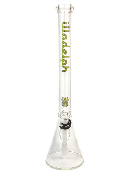 ARTIST: IlladelphHEIGHT: 21"BASE DIAMETER: 5.5"JOINT SIZE: 14mm 45ºCOLORS: Clear, White Downstem, Lime Label