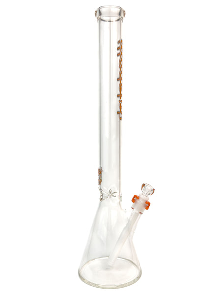 ARTIST: IlladelphHEIGHT: 21"BASE DIAMETER: 5.5"JOINT SIZE: 14mm 45ºCOLORS: Clear, White Downstem, Orange Label
