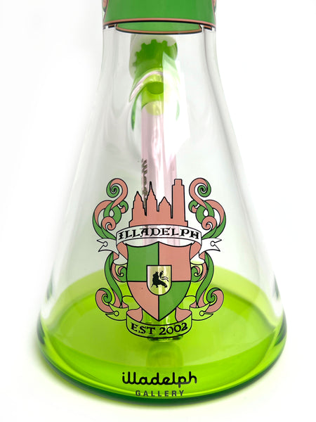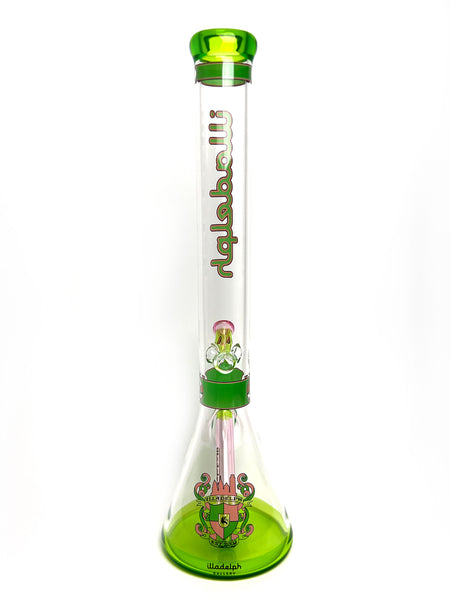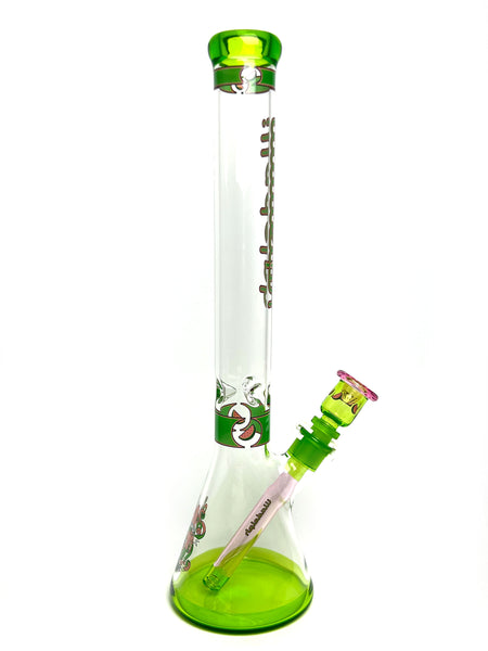 ARTIST: IlladelphHEIGHT: 19"BASE DIAMETER: 5.5"JOINT SIZE: 18mm 45ºCOLORS: Pink, Lime Green, Clear