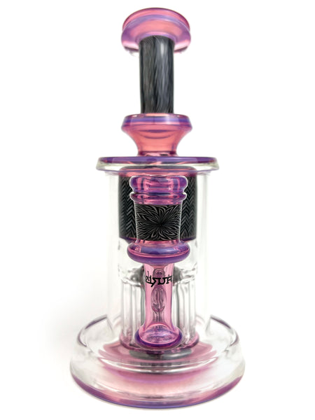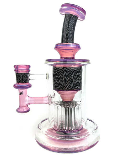 ARTIST: Leisure Glass HEIGHT: 8.5"BASE DIAMETER: 4.25"JOINT SIZE: 14mm 90ºCOLORS: Stargazer, Black & White Zanfirico