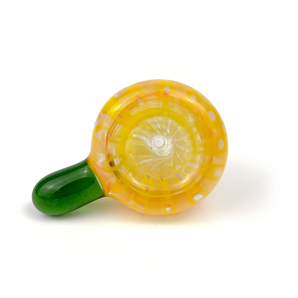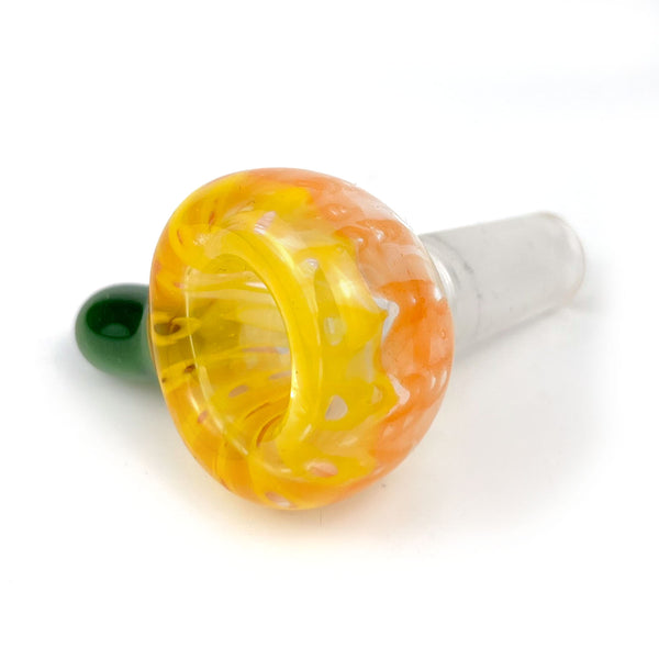 ARTIST: C Mau GlassJOINT SIZE: 14mmCOLORS: White, Orange, Yellow, Green Stardust