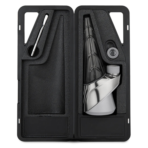 The Guardian is a limited edition Puffco Peak Pro, the highest standard for concentrate consumption technology. Featuring a chrome aluminum alloy band, metallic transparent silicone base and Art Deco style glass, the Guardian Peak Pro comes with an innovative 3D Chamber.