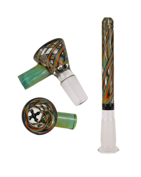 Artists: Reverend Morse, Zombie Hand HEIGHT: 12.5"BASE DIAMETER: 5.5"JOINT SIZE: 14mm 45ºCOLORS: Rainbow Double Layer linework, Black, Crushed Opal, Plantphibian