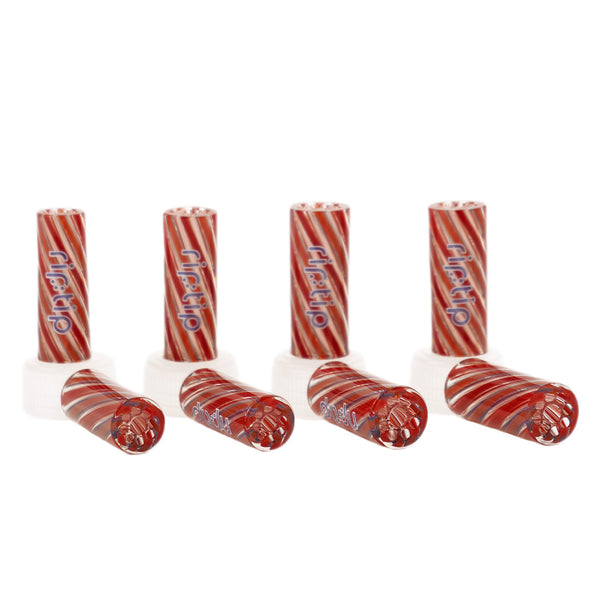 The RipTip is a reusable borosilicate glass rolling tip with a unique nine-hole pattern that allows for better airflow, a more even burn, and enhanced flavor.