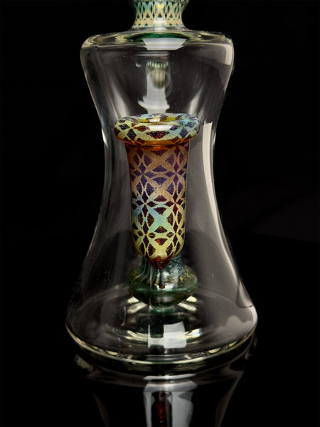 ARTIST: Taco JesusHEIGHT: 8"BASE DIAMETER: 3.5"JOINT SIZE: 14mm 90ºCOLORS: Amber, Cobalt Blue, Lake Green, Gold Fume, Silver Fume