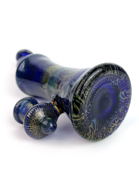 ARTIST: Taco JesusHEIGHT: 8"BASE DIAMETER: 3"JOINT SIZE: 14mm 90ºCOLORS: Cobalt Blue, Gold Fume, Silver Fume