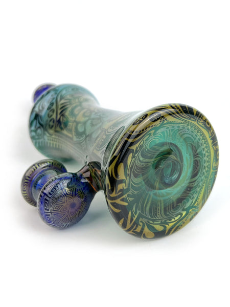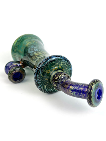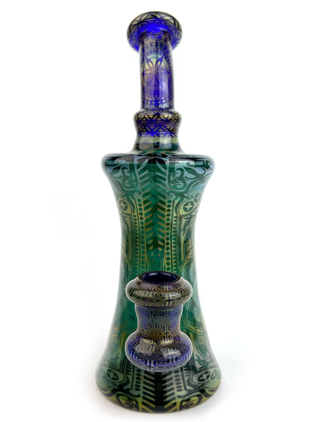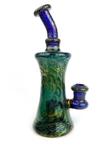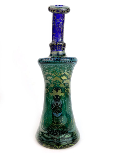 ARTIST: Taco JesusHEIGHT: 8"BASE DIAMETER: 3"JOINT SIZE: 14mm 90ºCOLORS: Cobalt Blue, Lake Green, Gold Fume, Silver Fume