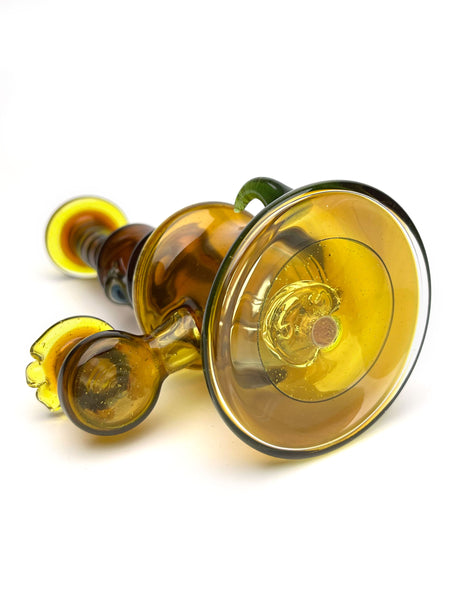 ARTIST: The Wisco KidHEIGHT: 7"BASE DIAMETER: 3"JOINT SIZE: 10mm 90ºCOLORS: Sparkle Brown, Yellow, Mystery Aventurine