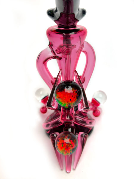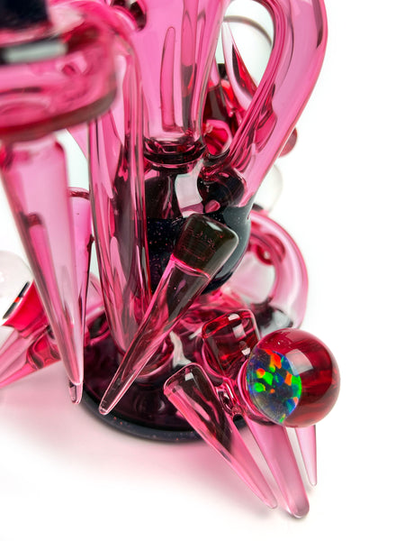 HEIGHT: 7.5"BASE DIAMETER: 2.5"JOINT SIZE: 10mm 90ºCOLORS: Gold Ruby, Crushed Opal over Galaxy