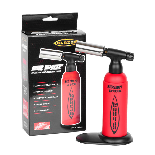 The powerful, portable Anti-Flare butane refillable torch. The Big Shot GT 8000 features a strong and sturdy brass flame nozzle, detachable base and precision flame control. Turn it upside down without worrying about flame blow-out.