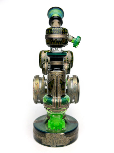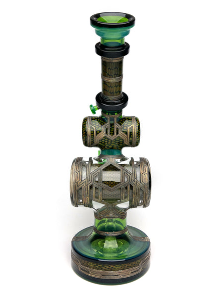 ARTISTS: Evol Empire, Firekist, Ryan Fitt, Jared CortlandHEIGHT: 11"BASE DIAMETER: 4"JOINT SIZE: 14mm 90ºCOLORS: Jet Black Snakeskin, Galaxy, Plantphibian, Patina Satin Nickel Plating