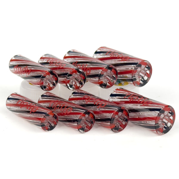 The RipTip is a reusable borosilicate glass rolling tip with a unique nine-hole pattern that allows for better airflow, a more even burn, and enhanced flavor.