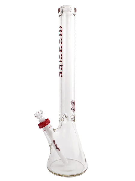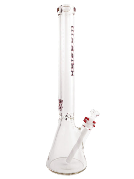ARTIST: IlladelphHEIGHT: 20"BASE DIAMETER: 5"JOINT SIZE: 14mm 45ºCOLORS: Clear, White Downstem, Black/Red Label