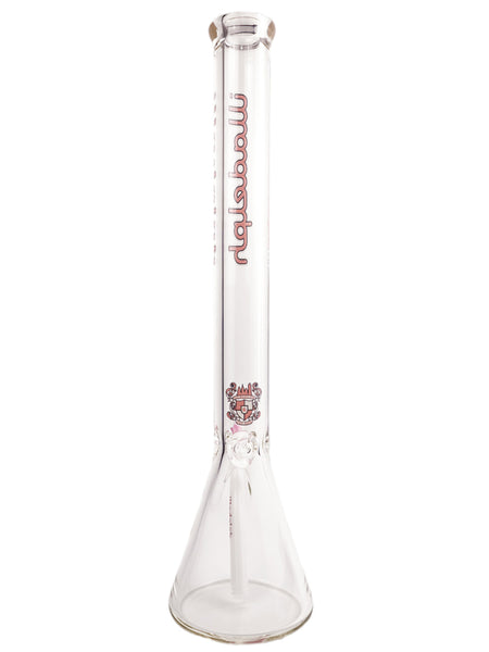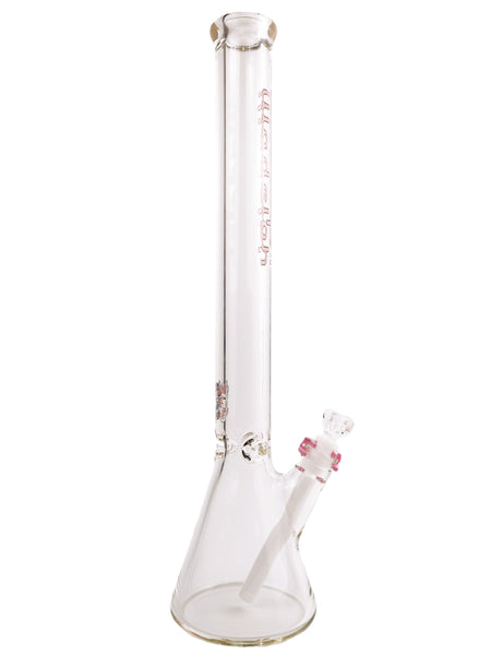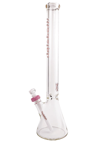 ARTIST: IlladelphHEIGHT: 21"BASE DIAMETER: 5"JOINT SIZE: 14mm 45ºCOLORS: Clear, White Downstem, Pink Label