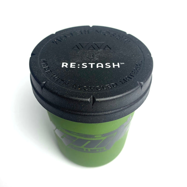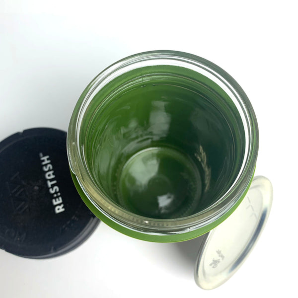 With the Re:stash jar, the Mason-re team further transforms the mason jar into the perfect stash jar. The Re:stash jar includes a mason jar, a silicone koozie and a patent-pending child proof lid. Jar has no plastic and the lid is made with 30% farm waste.Â