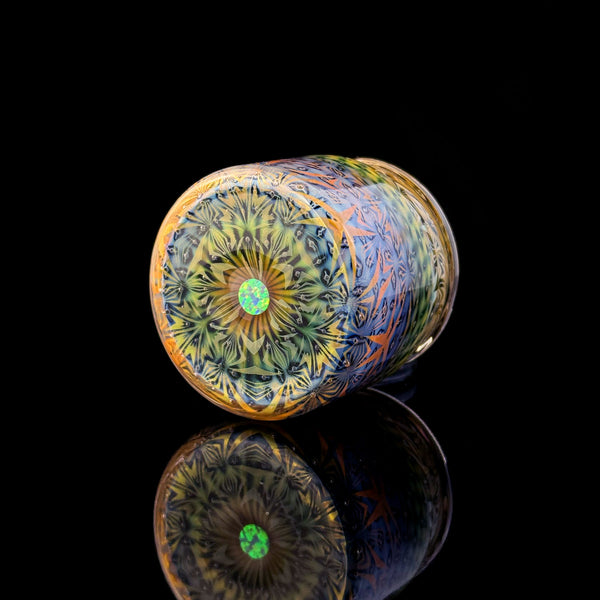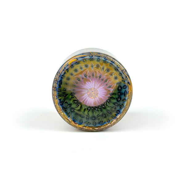 ARTIST: Steve SizeloveHEIGHT: 1.6"BASE DIAMETER: 1.5"COLORS: Dusk, Gold fume, Silver Fume, Opal Coin