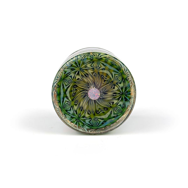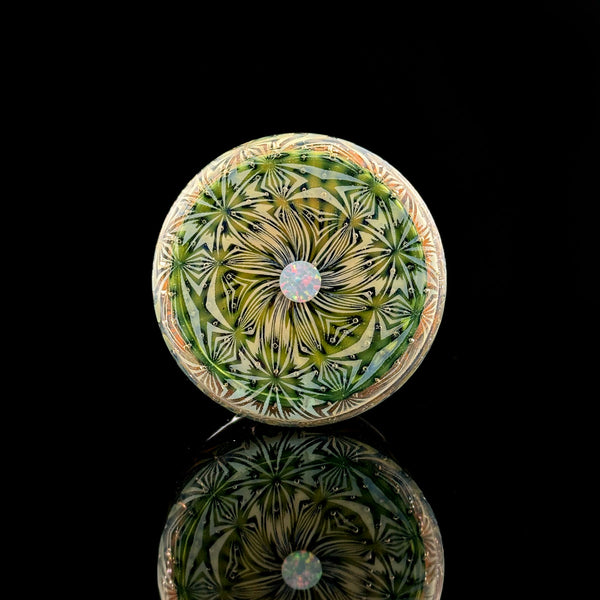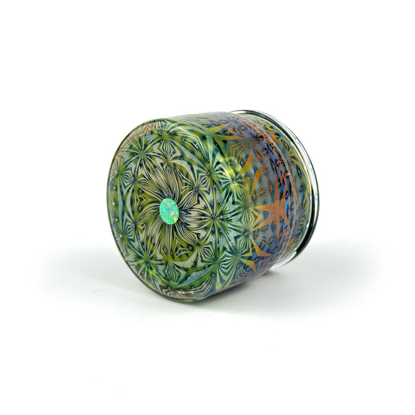 ARTIST: Steve SizeloveHEIGHT: 1.4"BASE DIAMETER: 1.5"COLORS: Jet Black, Gold fume, Silver Fume, Opal Coin